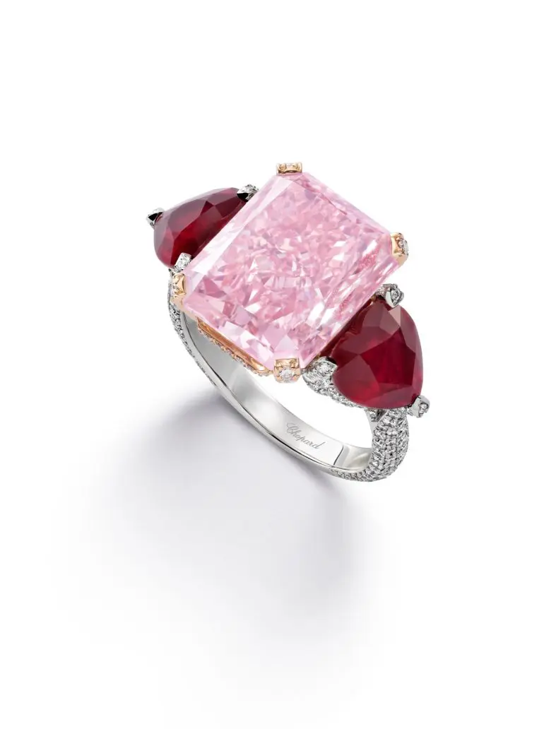 Copreședintele și directorul artistic al Chopard, Caroline Scheufele, prezintă o selecție de pietre excepționale pentru Săptămâna Haute Couture de la Paris. Omagii strălucitoare aduse recompenselor Naturii, care sunt o sursă perpetuă de inspirație pentru Chopard, aceste pietre prețioase nemaipomenit de pure au atras atenția acestui expert desăvârșit și i-au hrănit imaginația fertilă. Printre aceste comori, Chopard Insofu Emerald se remarcă drept cea mai spectaculoasă piatră dintre toate: un smarald brut de 6.225 ct exploatat în Zambia și obiectul unui proces de trasabilitate și responsabilitate care este pur și simplu fără precedent pentru o bijuterie de această importanță. Datorită purității excepționale și dimensiunii record a Smaraldului Chopard Insofu, specialiștii se așteaptă ca acesta să producă un număr mare de pietre tăiate de înaltă calitate, din care atelierele Chopard vor crea o colecție de piese de bijuterii. O altă piatră remarcabilă – un diamant roz intens fantezist de 10,88 ct – reflectă pasiunea pentru diamantele colorate găzduită de sufletul creativ al Maison. Diamantul tăiat radiant este fixat într-un inel de aur etic certificat Fairmined. Diamantele roz sunt printre cele mai rare nuanțe din curcubeul pietrelor colorate. Diamantele roz cu o culoare „fantezie intensă” sunt și mai rare, motiv pentru care Copreședintele și Directorul Artistic Chopard a fost atât de emoționat când a văzut acest exemplar de 10,88 ct. Având o tăietură radiantă – o variantă excepțională de 70 de fațete a tăieturii dreptunghiulare – „Trandafirul Carolinei” este ca o ofertă incandescentă la lumină, dezvăluind nuanța sa feminină și claritatea sa VVS1 la scara Gemological Institute of America.