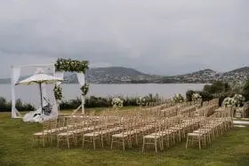 În luna august a anului trecut, în plină pandemie, pe vremea când în Grecia încă se permitea organizarea evenimentelor, cei de la Dichis au creat cadrul ideal pentru una dintre cele mai frumoase nunți, chiar lângă Atena, la Grand Resort Lagonissi, o locație excelentă din multe puncte de vedere, dar mai ales atunci când „lux” este un cuvânt esențial în „moodboard-ul” de concept.