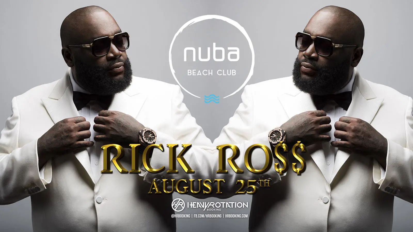 Rick Ross, rapper-ul american, va concerta în Mamaia Nord și pentru prima dată în România, iar grupul NUBA a pregătit, împreună cu artistul, un show incendiar pentru publicul prezent la eveniment. Rick Ross va sosi la Nuba Beach Club cu un Lamborghini cu care va și urca direct pe scena concertului. Show-urile artistului, cât și muzica sa sunt un etalon pentru cele mai exclusiviste cluburi atât din Europa, cât și din USA.