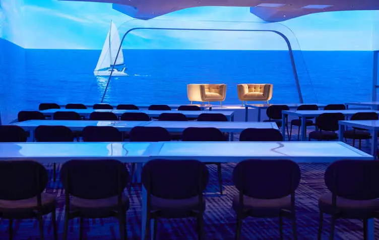 Patru proiectoare de prezentare sunt încorporate în tavan și pot fi utilizate simultan cu proiectoarele de mediu. 24 de microfoane încorporate (12 pentru fiecare sală) sunt fixate pe tavan și asigură consolidarea și înregistrarea de ultimă generație a vorbirii, permițând prezentări fără întreruperi. 32 de difuzoare audio (16 pentru fiecare cameră) oferă un design discret, o estetică premium și performanțe înalte de ultimă generație. Fiecare dintre cele 52 de spoturi pin (26 pentru fiecare cameră) are un fascicul reglabil cu rază de 6′ care este ușor de controlat și programat pentru a oferi o performanță ridicată pentru maparea proiecției.