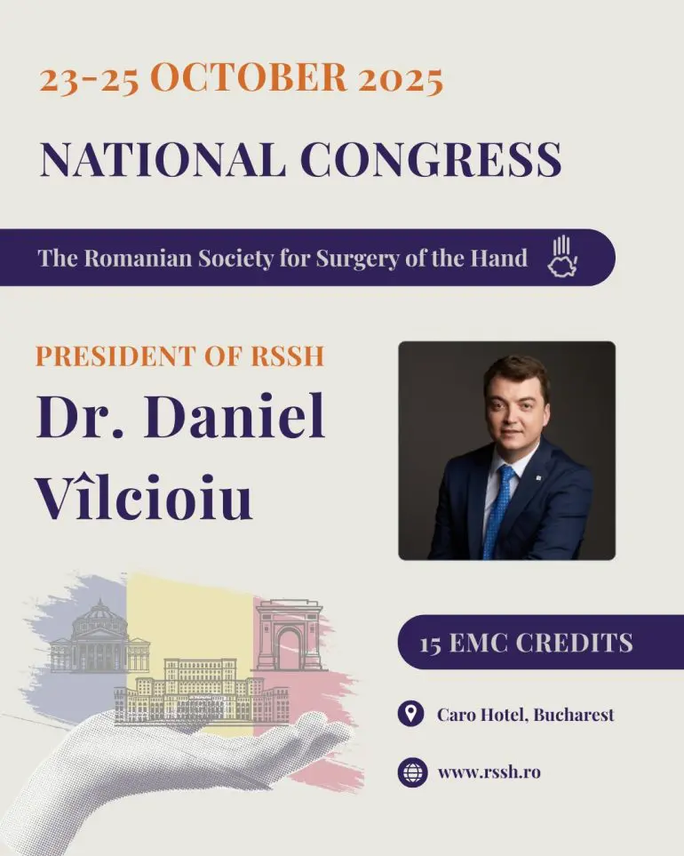 Medicina mâinii are, în România, o tradiție de excelență și o comunitate științifică puternică, dedicată perfecționării continue. În acest spirit, Societatea Română de Chirurgia Mâinii (RSSH) anunță cu bucurie desfășurarea Congresului Național RSSH 2025, un eveniment de referință în calendarul medical al toamnei.
