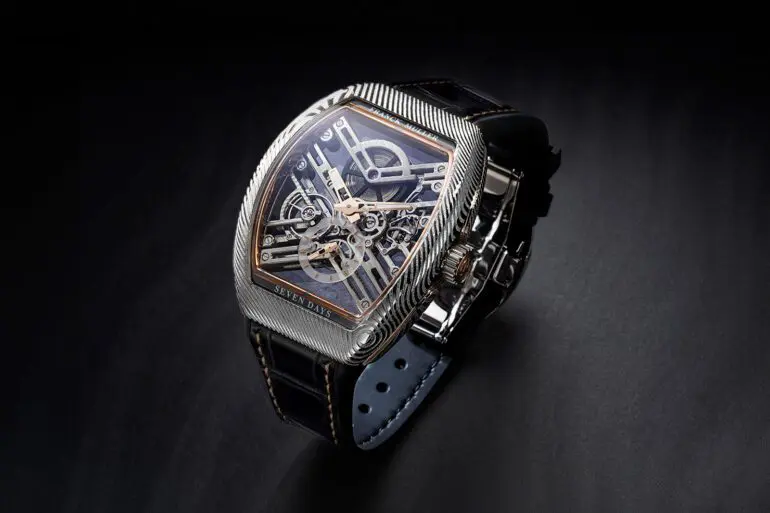 Franck Muller Vanguard Damascus Steel Sincere Platinum Jubilee Edition combină în carcasa în formă de tonneau marca Franck Muller, un aliaj de carcasă neobișnuit și unul dintre cele mai interesante mecanisme ale mărcii, un calibru tip scheleton, cu o rezervă de putere foarte generoasă, respectiv de nu mai puțin de șapte zile.