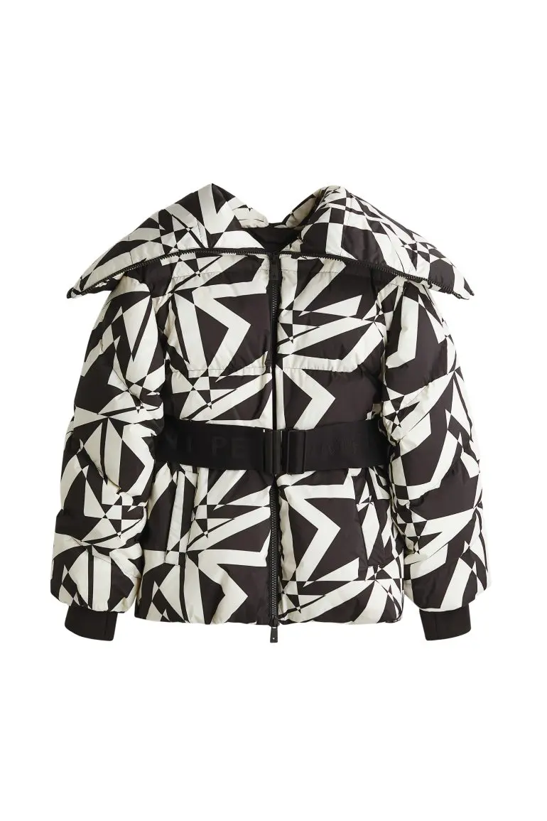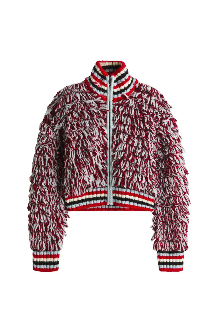 Piesele-cheie ale colecției includ o geacă matlasată din blană ecologică burgundy cu glugă și croială cropped, o geacă matlasată alb-negru cu imprimeu de stele, strânsă în talie cu o curea jacquard, o pereche de pantaloni din piele burgundy, inspirați de echipamentul clasic de schi, cu croială ușor evazată și fermoare pe gambe, un cardigan din lână bouclé cu detalii în dungi, și un set tricotat asortat, format dintr-un top cu nasturi și pantaloni scurți. La capitolul accesorii, colecția propune cizme tip moon boots din blană ecologică, căciuli cu ciucuri, ochelari de soare wraparound și o eșarfă oversize din lână și mohair cu imprimeu de stele.