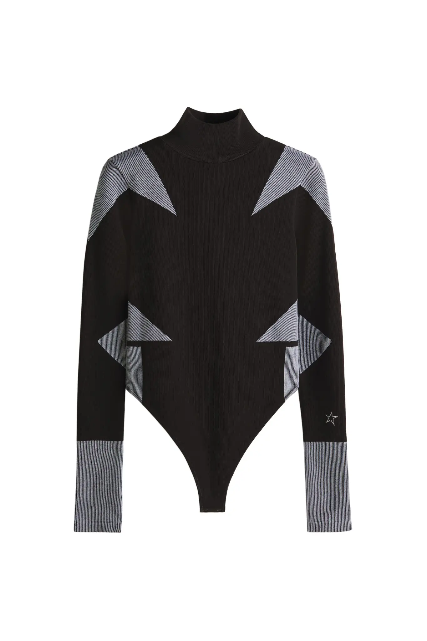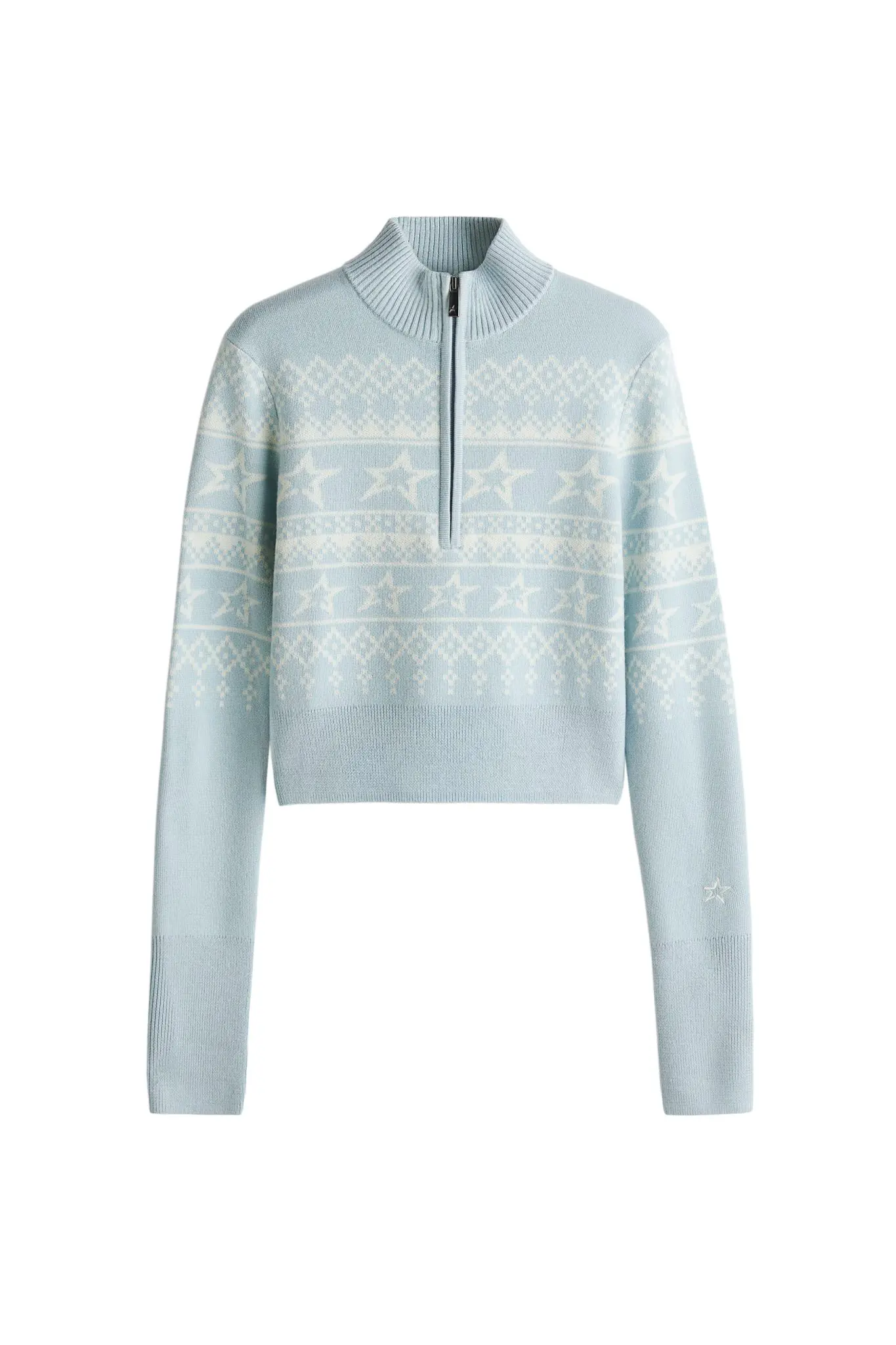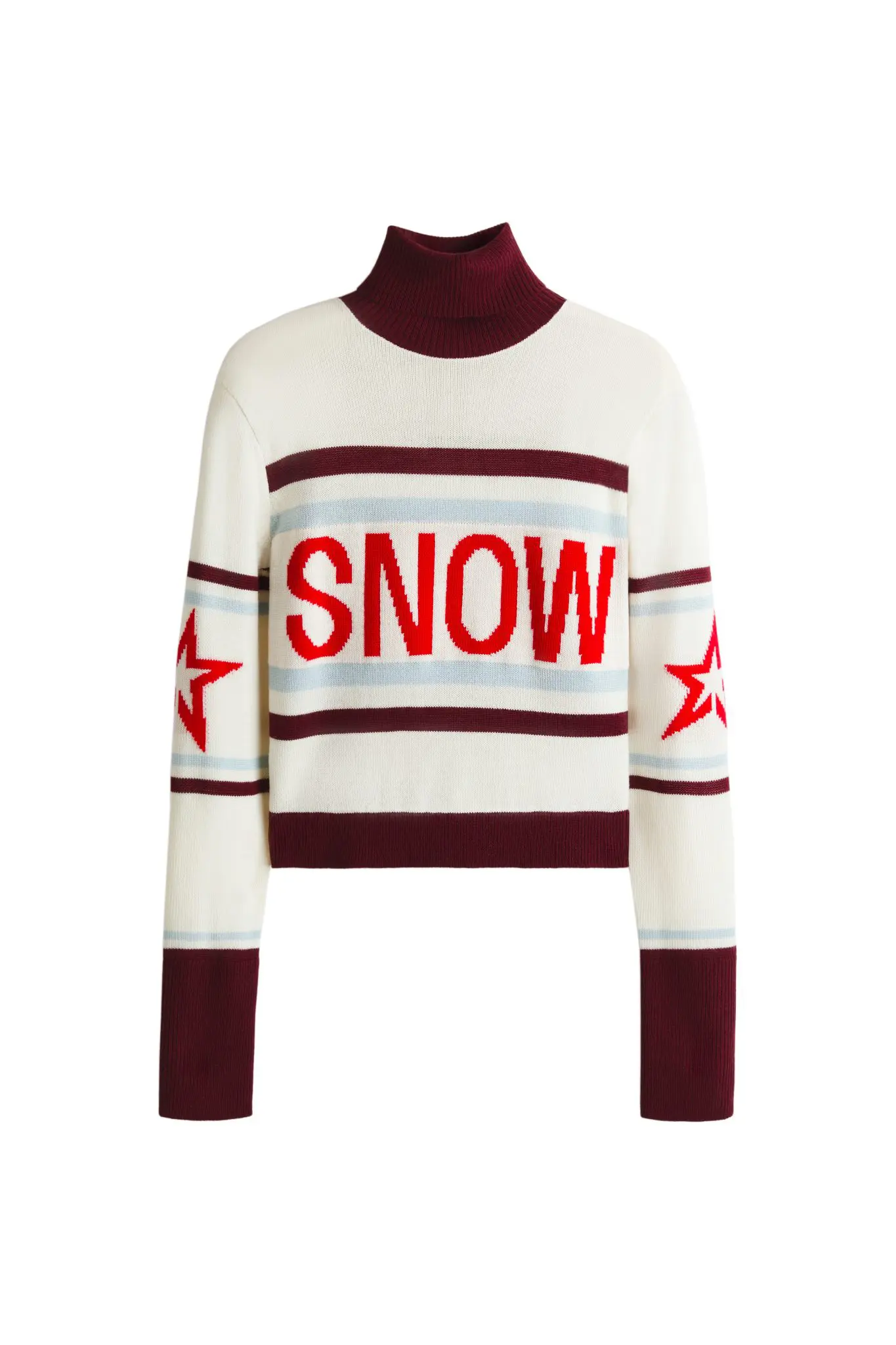 Piesele-cheie ale colecției includ o geacă matlasată din blană ecologică burgundy cu glugă și croială cropped, o geacă matlasată alb-negru cu imprimeu de stele, strânsă în talie cu o curea jacquard, o pereche de pantaloni din piele burgundy, inspirați de echipamentul clasic de schi, cu croială ușor evazată și fermoare pe gambe, un cardigan din lână bouclé cu detalii în dungi, și un set tricotat asortat, format dintr-un top cu nasturi și pantaloni scurți. La capitolul accesorii, colecția propune cizme tip moon boots din blană ecologică, căciuli cu ciucuri, ochelari de soare wraparound și o eșarfă oversize din lână și mohair cu imprimeu de stele.