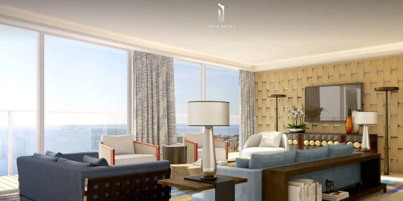 Impresionantul turn înalt de 49 de etaje este primul care este construit în principatul Monaco din anii 1980, când construcţia de clădiri înalte a fost limitată din cauzapreocupărilor că vor ruina coasta pitorească a statului Monaco. Penthouse-ul din Tour Odeon va fi pus în vânzare în 2015.