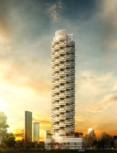 În complexul imobiliar vor exista și apartamente de vânzare, iar locatarii turnului se vor putea bucura inclusiv de grădinile luxuriante de pe acoperiș. Clădirea are un microclimat cu o suprafață generoasă de floră pentru menținerea unei temperaturi optime, reprezentând un avantaj în zona cu climat cald din Golf.