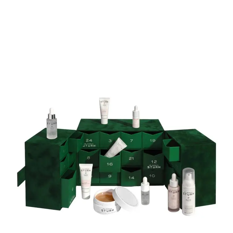 Pentru iubitorii produselor de skincare de ultimă generație, calendarul de advent semnat de Dr. Barbara Sturm rămâne un favorit detașat. Prezentată într-o cutie elegantă din catifea de culoare verde, ediția 2025 oferă o selecție meticuloasă de 24 de produse în format normal, miniatural și deluxe.