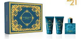 Cadoul perfect pentru El poate fi chiar setul compus din Versace Eros (apă de toaletă sau apă de parfum) și accesoriile pentru un ritual de îngrijire masculin complet – gel de duș, balsam after-shave, parfum travel size sau borsetă elegantă.