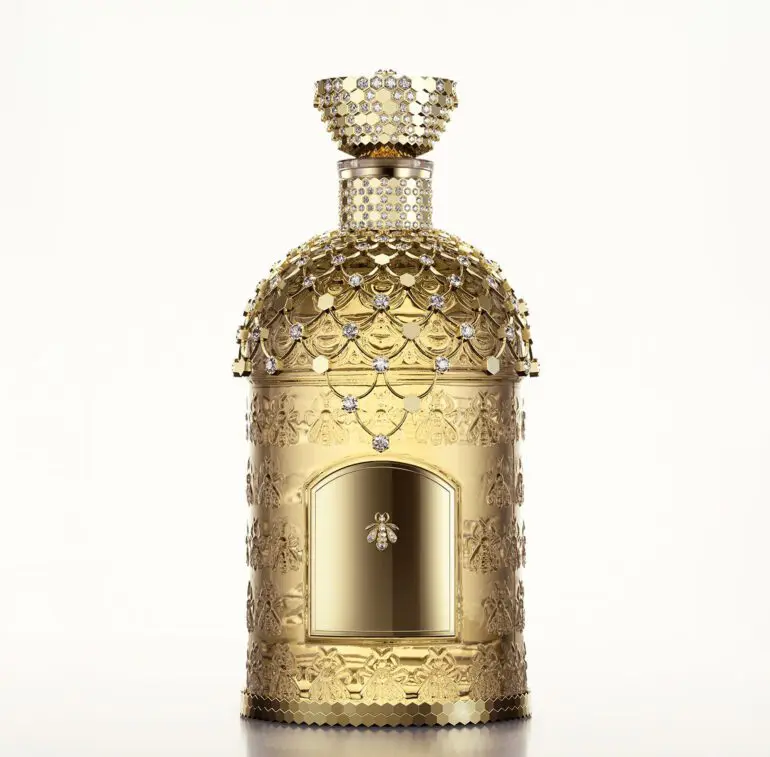 Pentru a celebra cum se cuvine aniversarea de 170 de ani a legendarei sticle Bee Bottle, reputatul brand Guerlain și casa franceză de bijuterii de lux Chaumet și-au pus la bătaie întreaga expertiză, făurind o piesă cu adevărat spectaculoasă, denumită Bouquet de la Cour. Această capodoperă, care a necesitat nu mai puțin de 270 de ore de muncă minuțioasă, include 336 de diamante sclipitoare și se mândrește cu un maiestuos diamant de două carate „Imperatrice” Size, rezultând astfel o fuziune uluitoare între arta parfumeriei și cea a bijuteriei.
