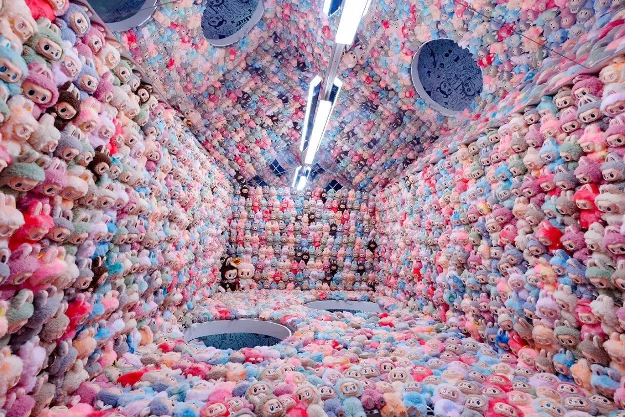 Expoziția este structurată în mai multe zone tematice. O secțiune dedicată designer toys documentează tranziția lui Labubu de la art toy independent la obiect de colecție mainstream, în timp ce o zonă interactivă evidențiază colaborarea cu Pop Mart, compania care a jucat un rol esențial în extinderea vizibilității internaționale a personajului.