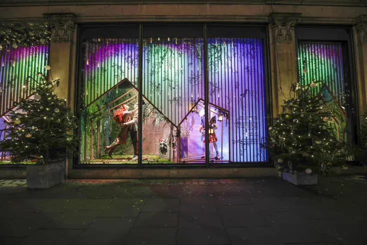 În apropiere de Harrods pot fi admirate și vitrinele spectaculoase ale Harvey Nichols, un alt lanț de magazine de lux, cu o rețea de 16 unități în Marea Britanie și Irlanda. Structura vizuală a vitrinelor este o fuziune a influențelor arhitecturale scandinave cu panouri din lemn de cedru lucrate manual, combinate cu ghirlande festive care evocă cerul înstelat al nopților din țările nordice. Conceptul de design se bazează pe ideea de contrast, între lumină și umbră sau frig și căldură.